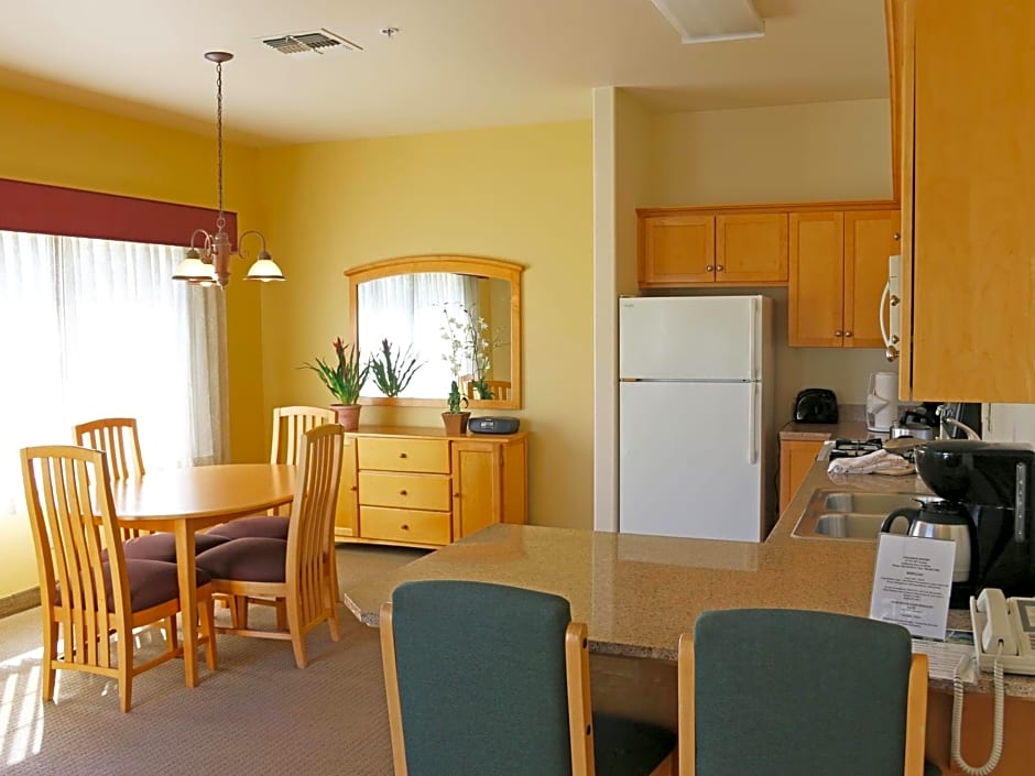 This air conditioned unit has a kitchenette with microwave, refrigerator, and a dishwasher.